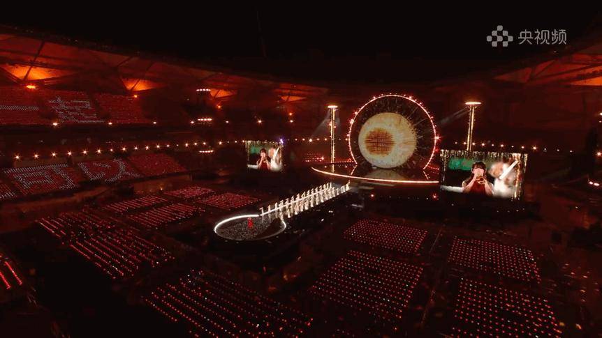 光,也是这场叙事中无声的语言。灯光总监董江从鸿蒙系统的开机动画中汲取灵感,将极具辨识度的“星环”造型贯穿整个场馆空间。设计团队不仅用数百台灯光设备在舞台上空构建了一个直径31米的超级光环,更在体育场内竖立起8组高达24米的立体灯光塔,让每一位观众都被笼罩在“在一起”的视觉叙事之中。据总导演田梅介绍,那打动了无数网友、点缀在观众席上的四万盏灯球,并非轻易铺就的背景,而是历经超百位工人三次接力安装、反复调试才得以呈现的呼吸光海。最初,这一设计曾因执行难度而面临调整,但在总导演田梅的坚持下,最终被完整保留。在她看来,这片星海是对盛典主题内核的生动诠释:“‘在一起,就可以’不仅是一句口号,更是对这个时代最温暖的注脚。它告诉我们:再遥远的梦想,也终将在并肩同行中,变得触手可及。”随着节目播出,灯球呈现出“在一起,就可以”“鸿蒙星光盛典”等字符,明亮而浪漫。四万星光分散在每一张座椅上,如同散落在千行百业、千家万户中的每一个开发者与用户;它们又能连成一片星海,展现出“在一起,就可以”的力量。